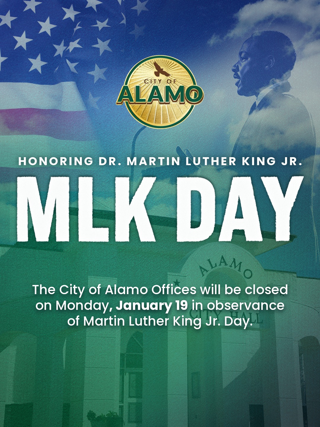 City of Alamo offices will be closed Monday, January 19th, in observance of Martin Luther King Jr. Day. We will resume normal business hours on the...